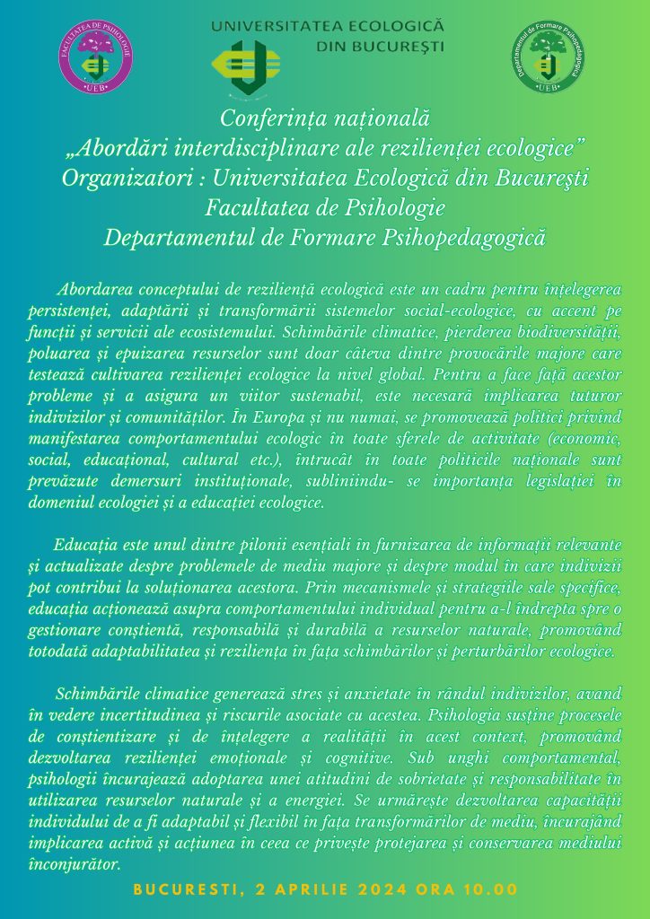 Conferința nationala – „Abordari interdisciplinare ale rezilientei ecologice”